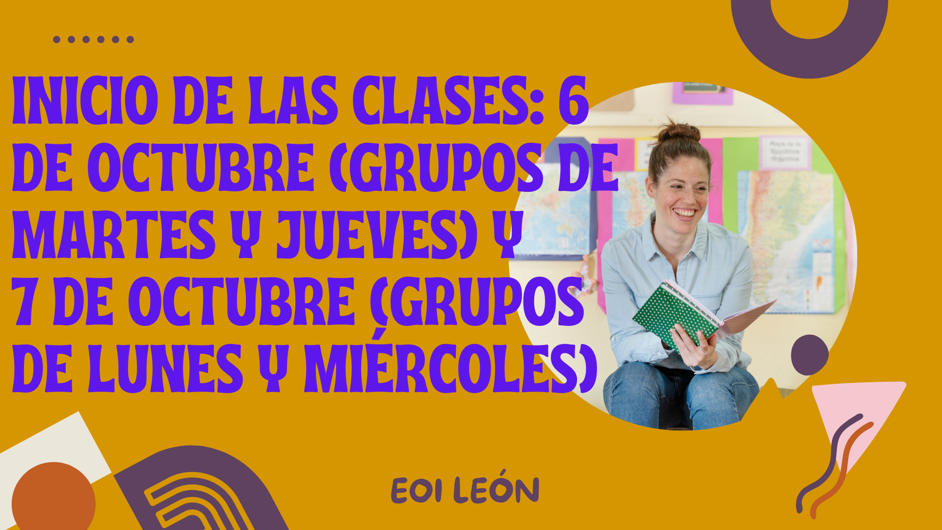 INICIO DE LAS CLASES : EL 6 de OCTUBRE (Martes/Jueves) y 7 de OCTUBRE (grupos Lunes y Miércoles)