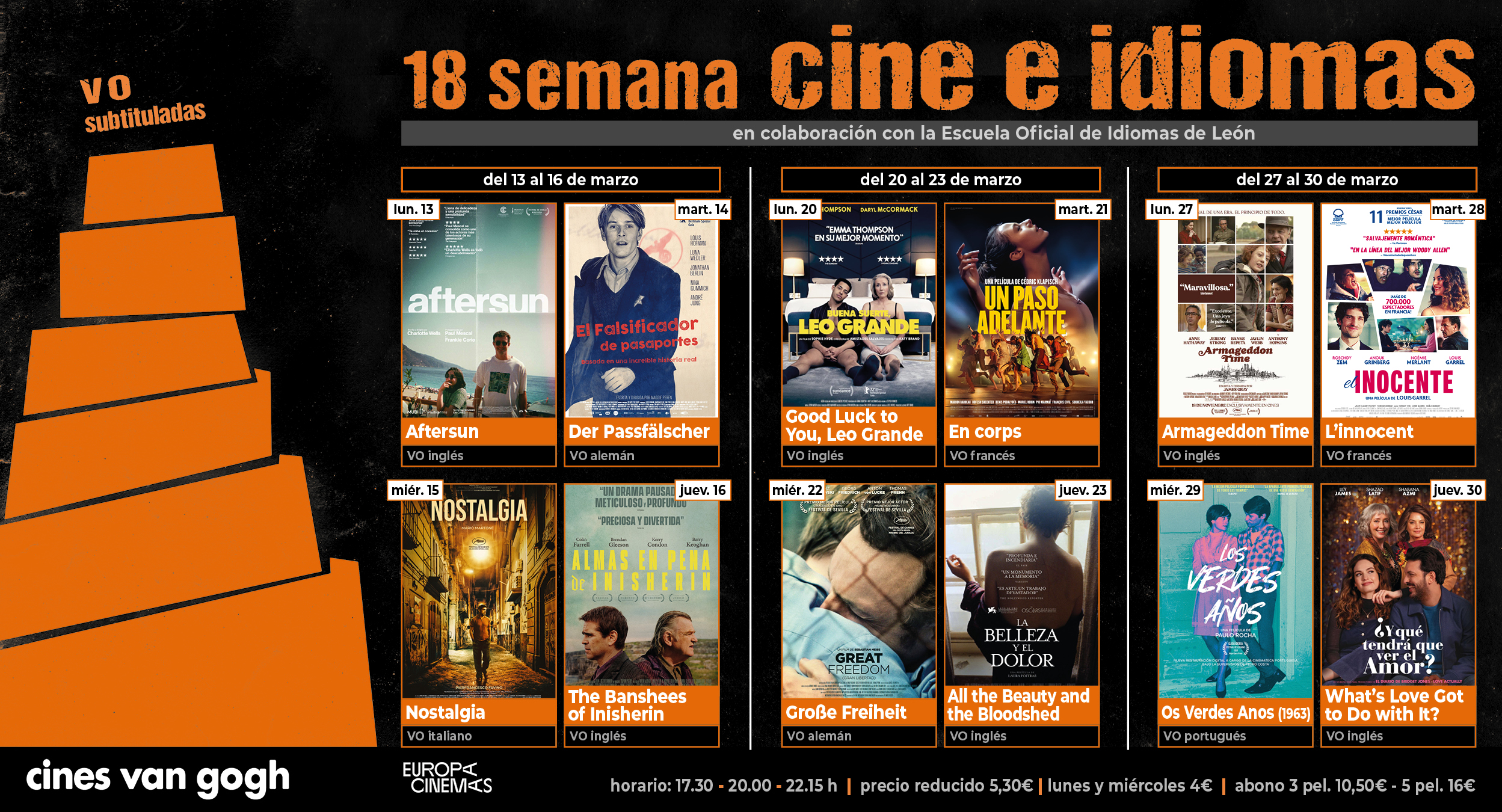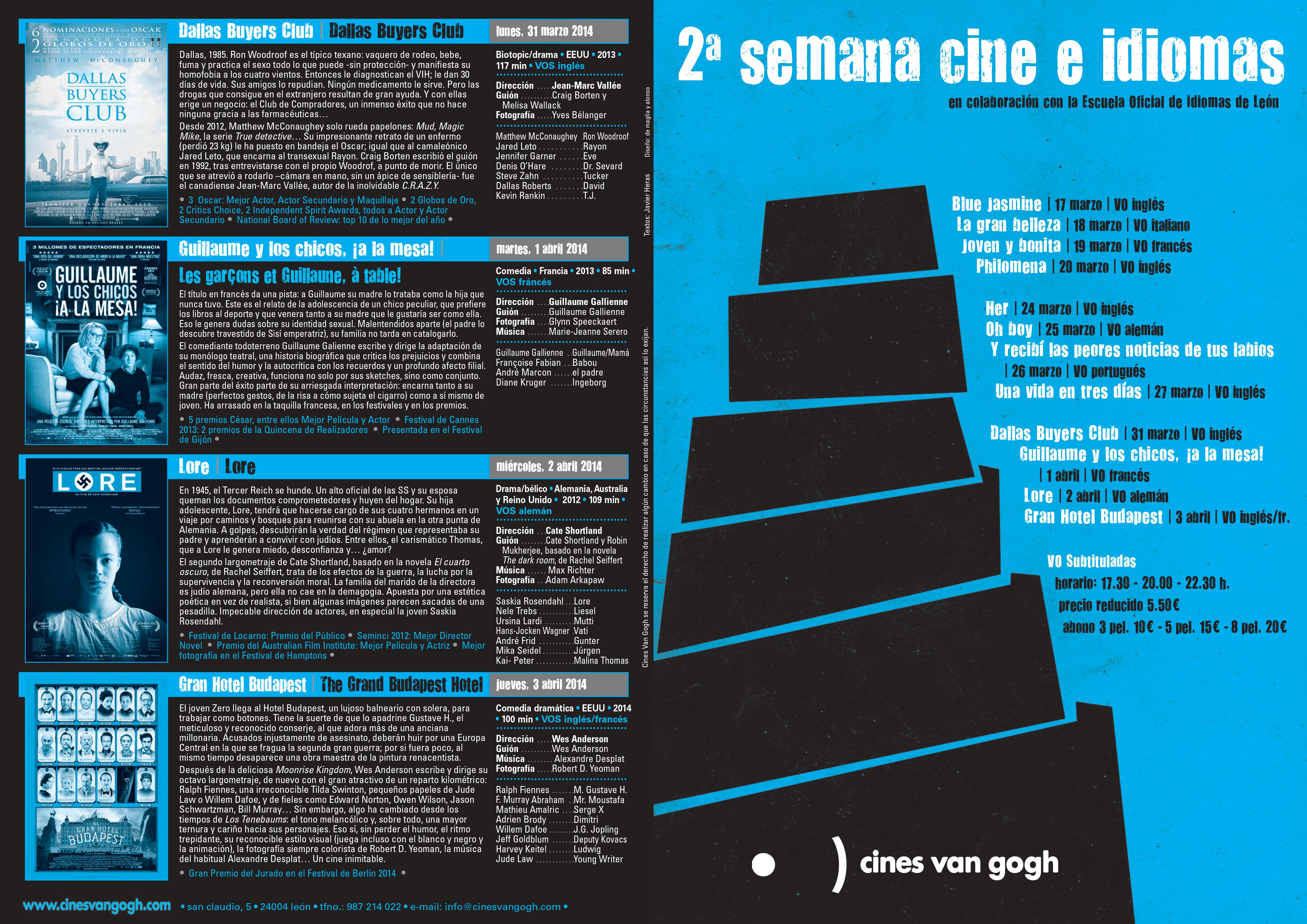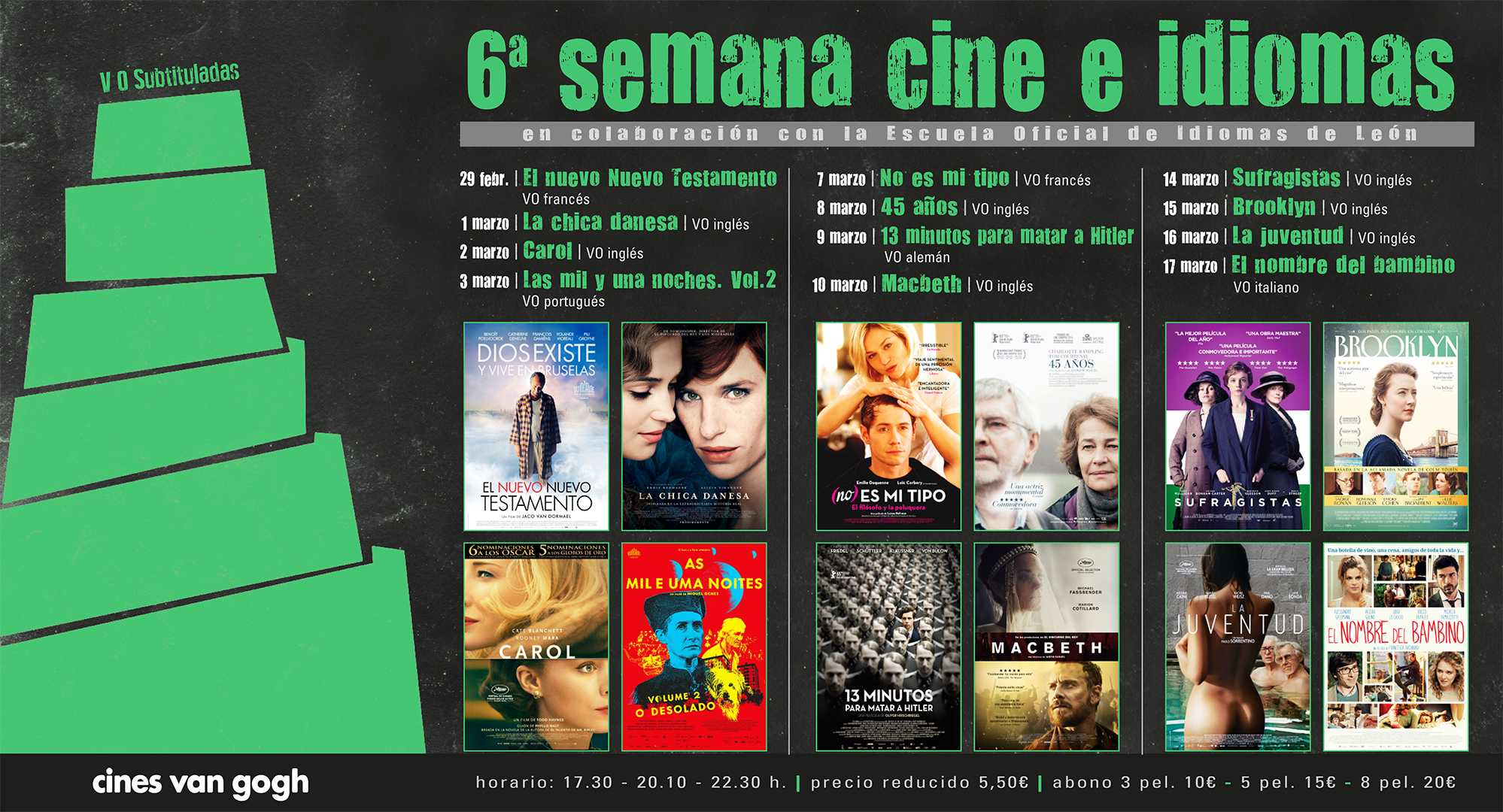 Del 29 de Febrero al 17 de Marzo 2016- Ciné en V.O: en Idiomas. Lugar : Ciné Van gogh, León