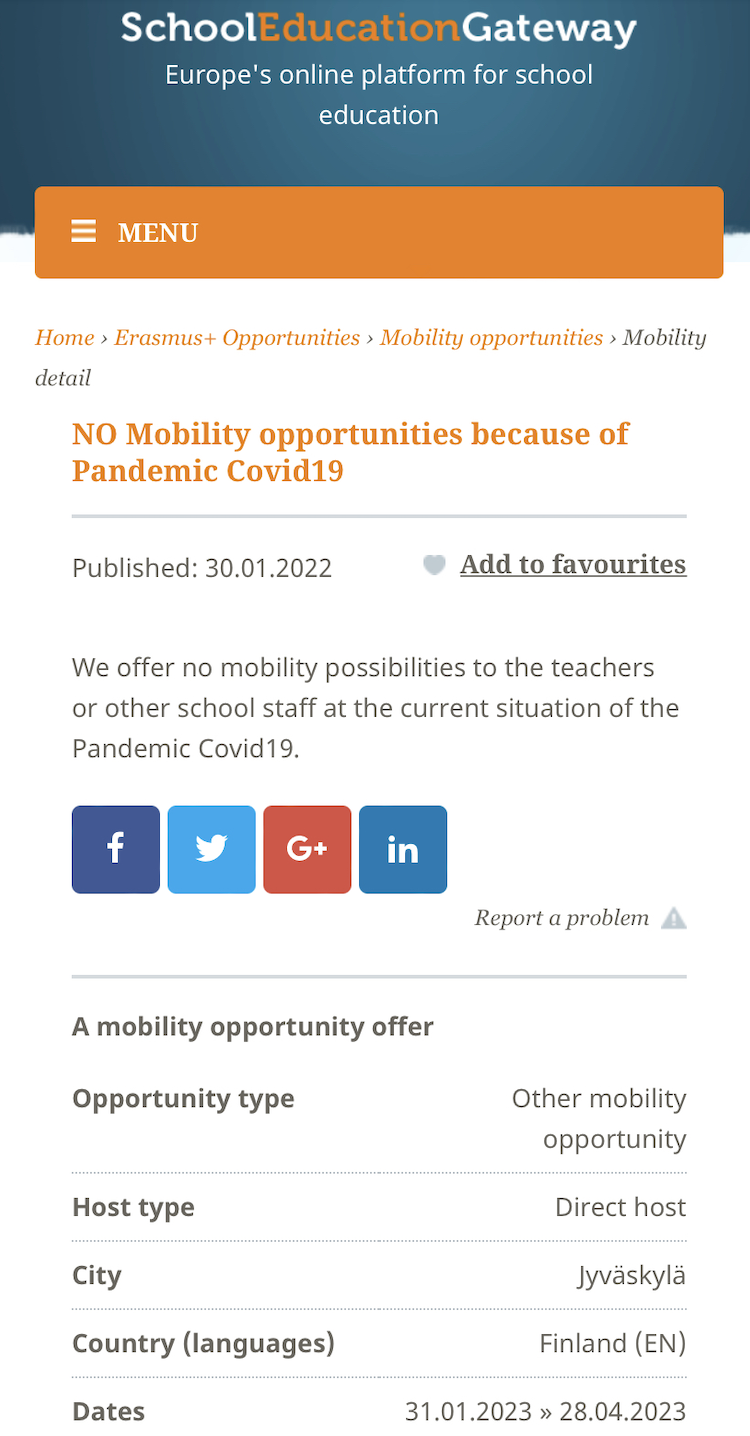 TARJETA DEL PROYECTO EN LA PLATAFORMA DE LOS PROYECTOS ERASMUS+