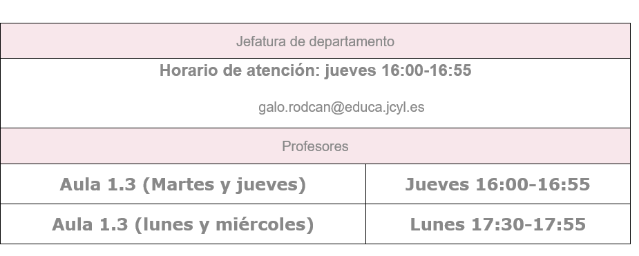 HORARIO DE ATENCIÓN AL ALUMNO CURSO 2025 -2026
