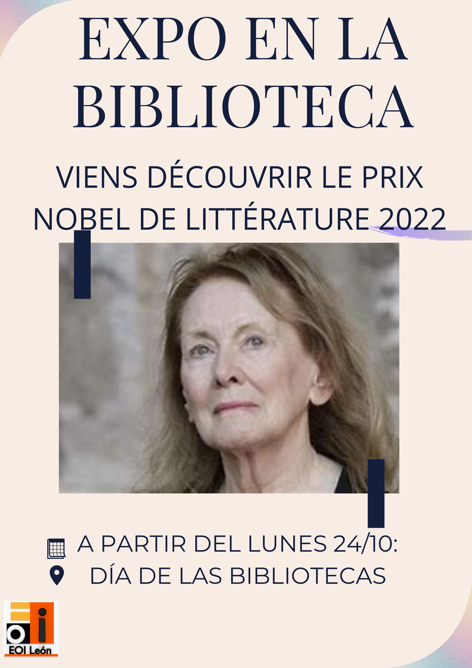 Venez découvrir le Prix Nobel de Littérature 2022 à la Bibliothèque de l´EOI León, à partir du lundi 24/10. #díadelabiblioteca #français #fle #litterature