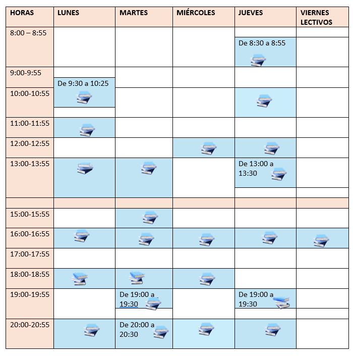 Sala de lectura de la biblioteca: horario de apertura según el horario de apertura del centro.
